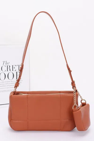 Women's Quilted Faux Leather Shoulder Bag W/ Airpod Bag In Brown
