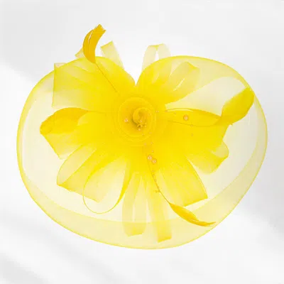 Pearl Feather Mesh Flower Fascinator / Headband In Yellow