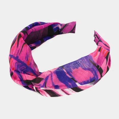 Tropical Leaf Patterned Twisted Headband In Pink
