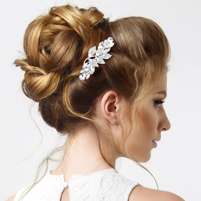 Marquise Stone Cluster Accented Leaf Vine Hair Comb In Silver