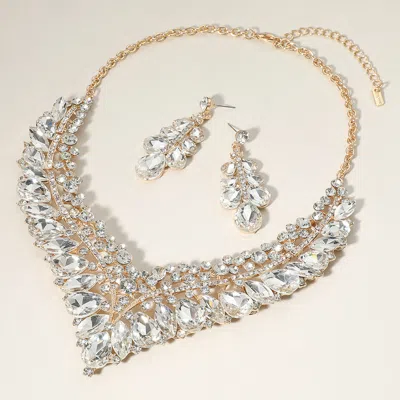 Teardrop Marquise Round Stone Embellished V Shaped Evening Necklace In Silver