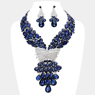 Teardrop Round Stone Embellished Statement Evening Necklace In Blue