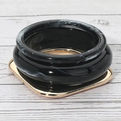 3pcs - Bold Modern Mixed Shape Resin Flat Square Metal Bangle Multi Layered Bracelets In Black
