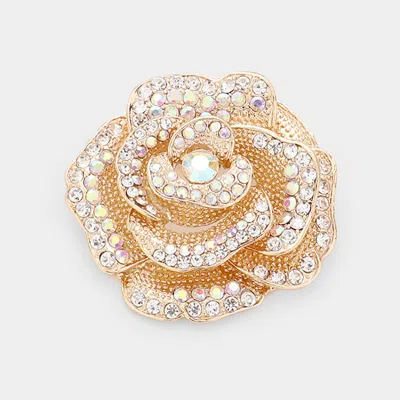 Crystal Rhinestone Pave Rose Brooch In Gold