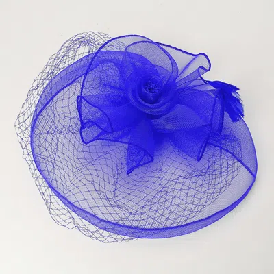 Flower Feather Mesh Fascinator / Headband In Blue
