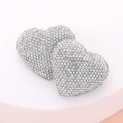 White Gold Dipped Cz Stone Paved Boutique Ribbon Huggie Earrings In Silver