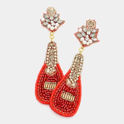 Felt Back Multi Beaded Champagne Dangle Earrings In Red