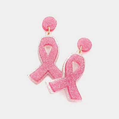Triple Glitter Resin Heart Plate Link Drop Earrings Pink