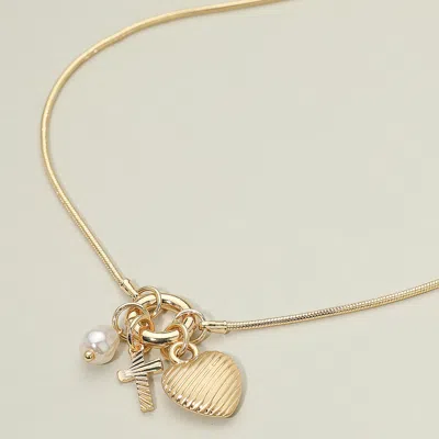 Heart Cross Pearl Charms Pendant Necklace In Gold