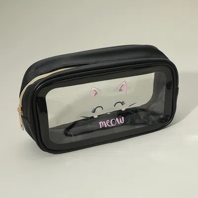 Meow Cat Face Printed Transparent Travel Cosmetic Pouch Bag In Black