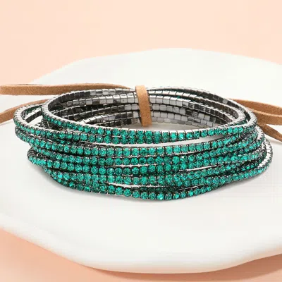 12pcs - Ribbon Colorful Rhinestone Layered Stretch Bracelets Blue Zircon In Multi