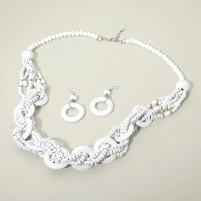 Bold Wooden Ring Layered Twisted Beaded Statement Long Necklace In White