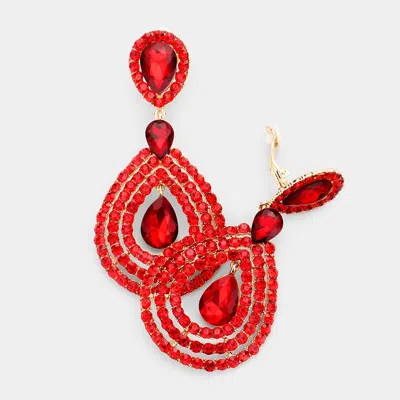 Crystal Pave Trimmed Teardrop Clip On Earrings In Red