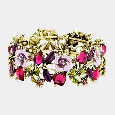 Glass Crystal Metal Flower Leaf Evening Bracelet Antique Gold, Purple In Multi