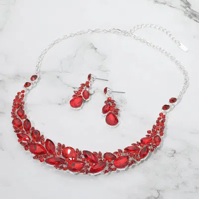 Marquise Stone Cluster Embellished Evening Necklace In Red