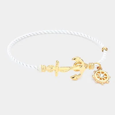 Nautical Anchor Helm Charm Hook Bracelet Clear, Gold, White