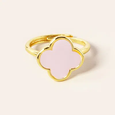 14k Gold Dipped Enamel Quatrefoil Ring In Pink