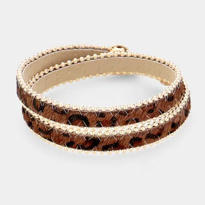 Leopard Leather Wrap Snap Button Closure Bracelet Brown