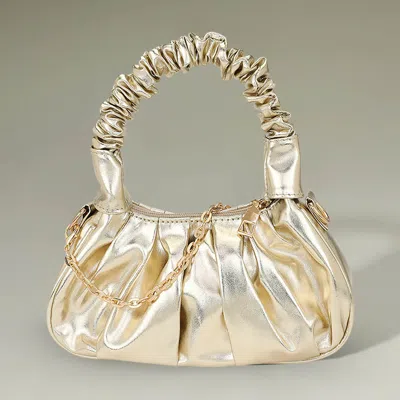 Metallic Faux Leather Top Handle Crossbody Bag In Gold