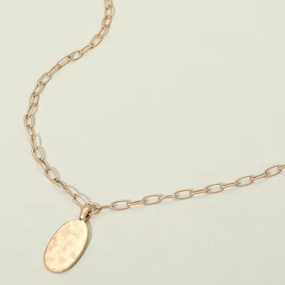 Hammered Metal Oval Pendant Paperlink Chain Necklace In Silver