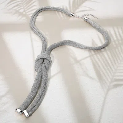 Modern Knot Accent Mesh Long Statement Necklace In Silver