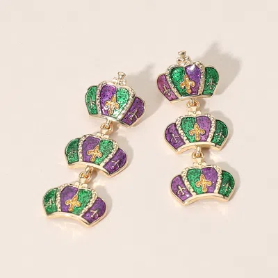 Triple Mardi Gras Crown Link Drop Earrings Gold