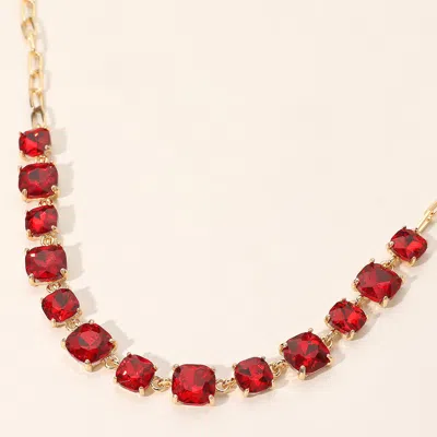 Cushion Square Stone Link Evening Necklace In Red