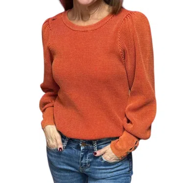 Kiki Waffle Knit Puff Sleeve Sweater In Burnt Orange