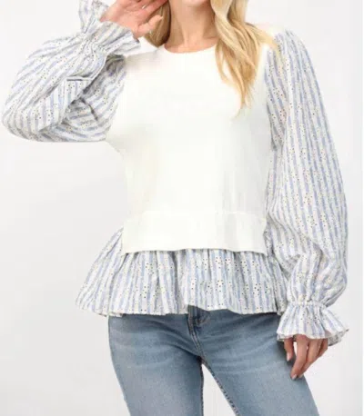 Foil Cable Knit Twofer Sweater In Navy/white In Multi