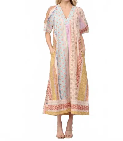 Afterglow Patchwork Midi Dress In Multi In Pink