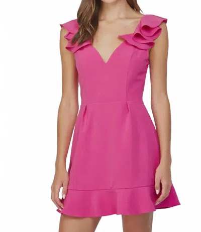 Ruffled Shoulder Detail Open Back Dress In Fuchsia In Pink