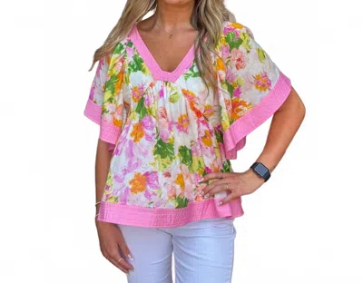 Sunny Floral Babydoll Top In Pink/cream