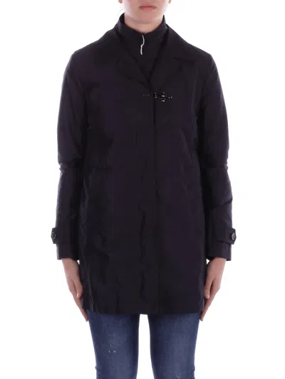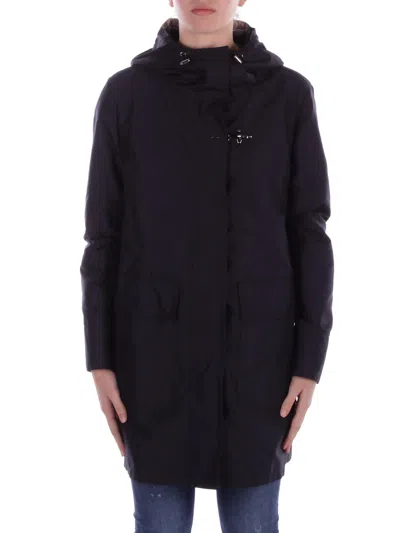 High-waisted Blue Wool Blend Coat With Iconic Closure In Black