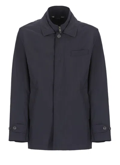 Lightweight Blue Stretch Nylon Overcoat With Double-front Design