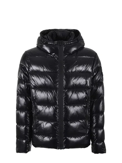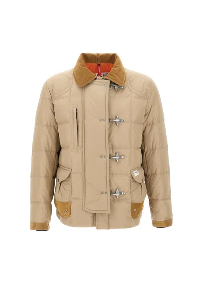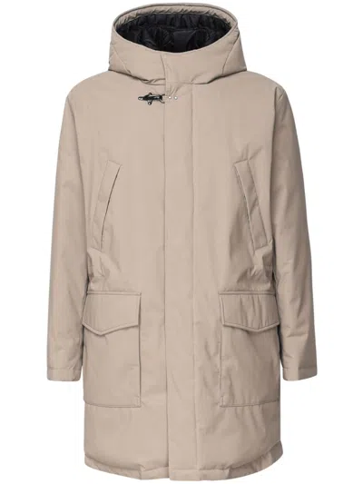Double-front Down Jacket In Calendered Poplin In Neutral