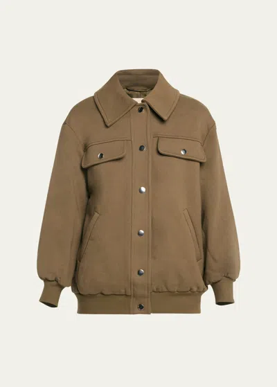Jane Snap-button Bomber Jacket In Khaki