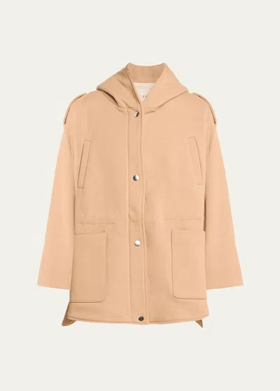 Ruby Hooded Top Coat With Drawcord Waist In Camel