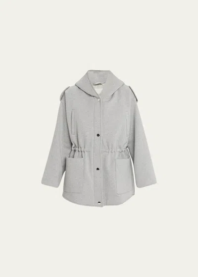 Ruby Hooded Top Coat With Drawcord Waist In Grey