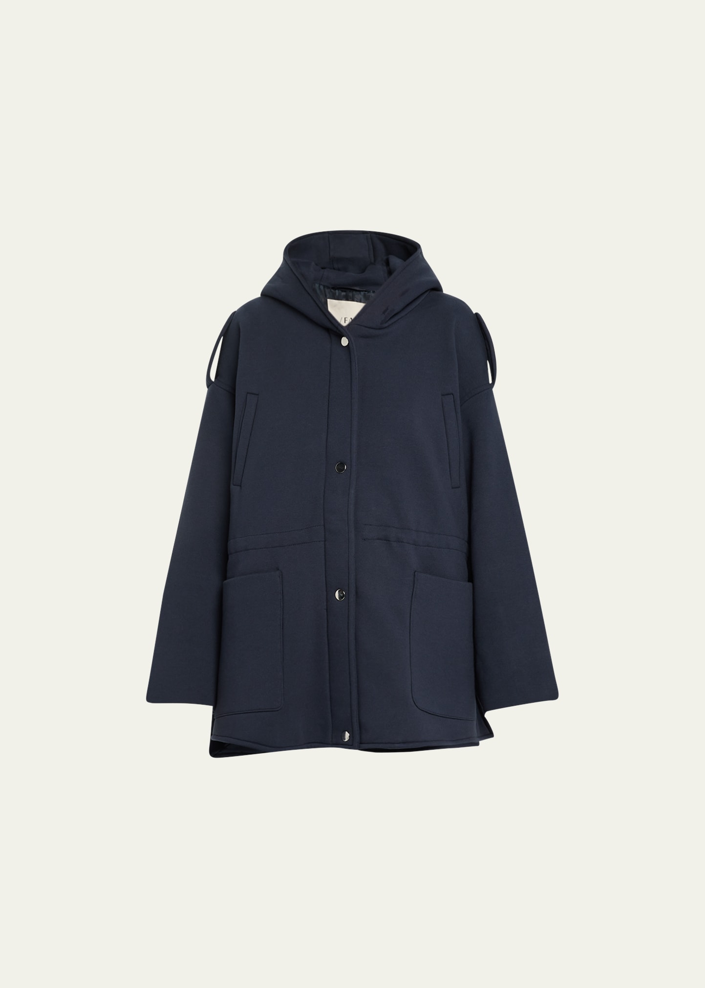 Ruby Hooded Top Coat With Drawcord Waist In Navy