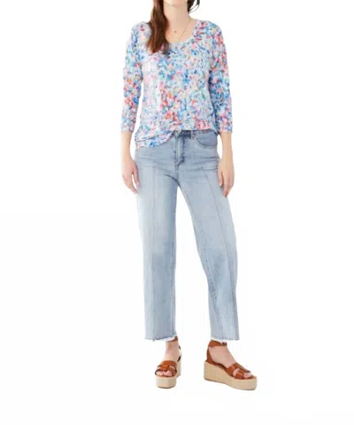Floral Three Quarter Sleeve Top In Multi