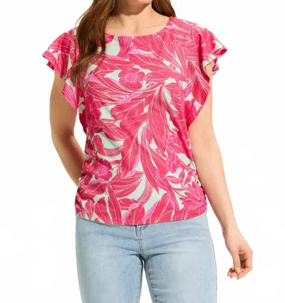 Flutter Sleeve Side Ruche Top In Pink Floral