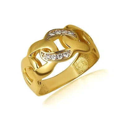 Pre-owned 14k Yellow Gold Bold Cz Studded Cuban Chain Link Band Ring In White