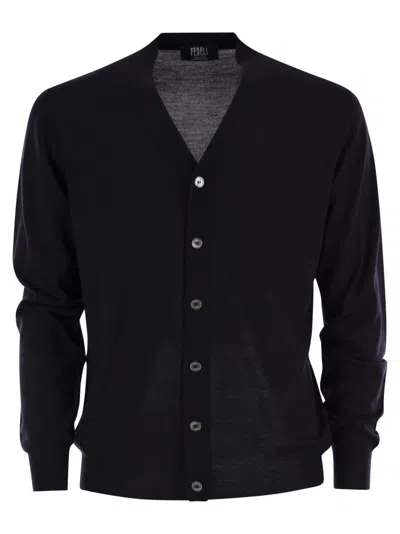 Lightweight Virgin Wool Cardigan In Black