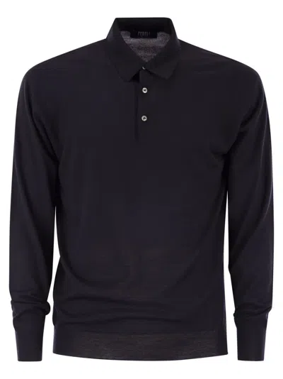 Virgin Wool Polo Shirt In Black
