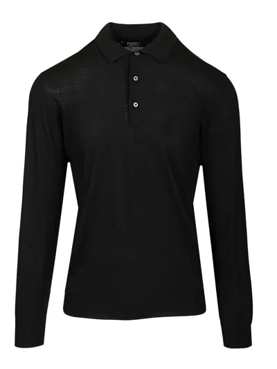 Virgin Wool Polo Shirt Knitwear Black
