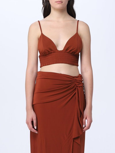 Cut-out Cotton Top With Drawstring Neckline In Rosso
