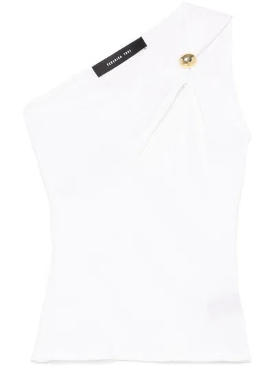 Cut-out Cotton Top With Halter Neck Design In Bianco