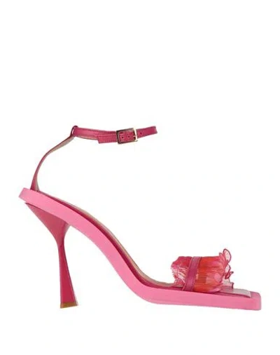 Woman Sandals Fuchsia Size 11 Leather, Textile Fibers In Pink