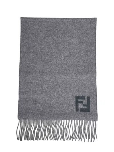 Grey And Green Two-tone Wool And Cashmere Scarf
