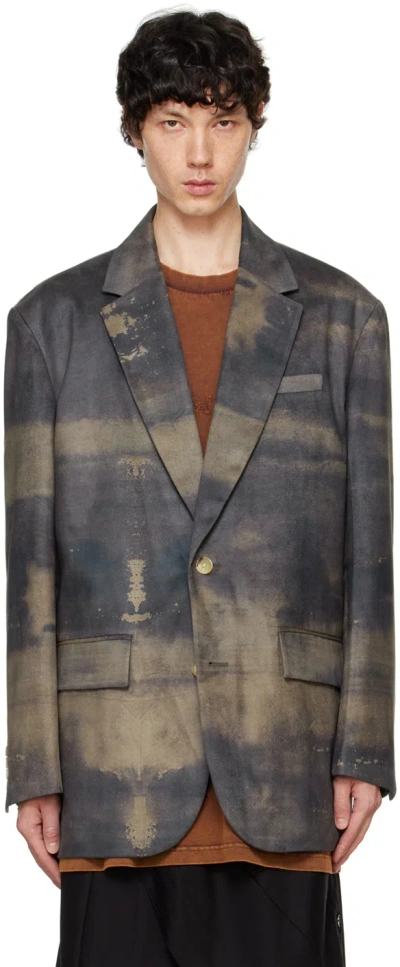 Khaki & Brown Camouflage Paneled Blazer In Multi